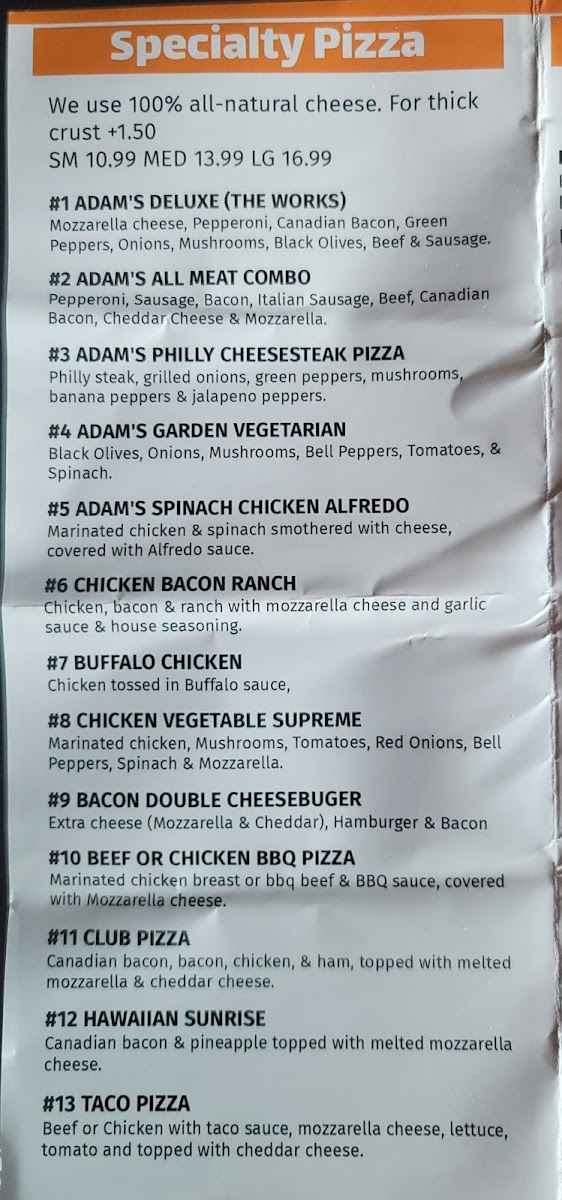 That’s not all; the inviting atmosphere and friendly staff make every visit a delightful experience. Customers rave about the homemade sauce and the variety of options, from traditional to unique flavors. Join the growing community of fans and discover why Adam’s Pizza House is a culinary gem, dedicated to making every meal special!